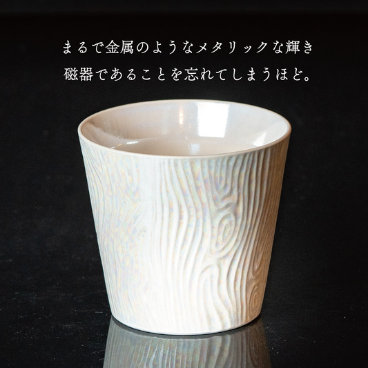 【お中元・夏ギフト】有田焼 ラスター彩 木目ロックカップ 2個セット (白2個) 喜鶴製陶